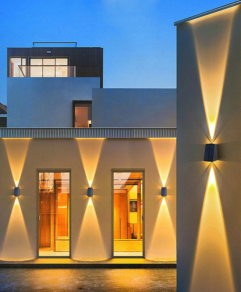 ☀【Up and Down Solar LED Wall Light】 The solar light has two/three beams of light up and down. This design enhances the brightness of the light and is aesthetically pleasing.